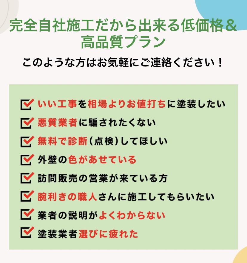 今は塗り頃ではない、ここは塗るべきなど、適正価格も全てお伝えします。