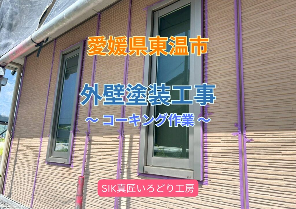 東温市のご自宅、外壁塗装工事の工程であるコーキング作業をご紹介します。