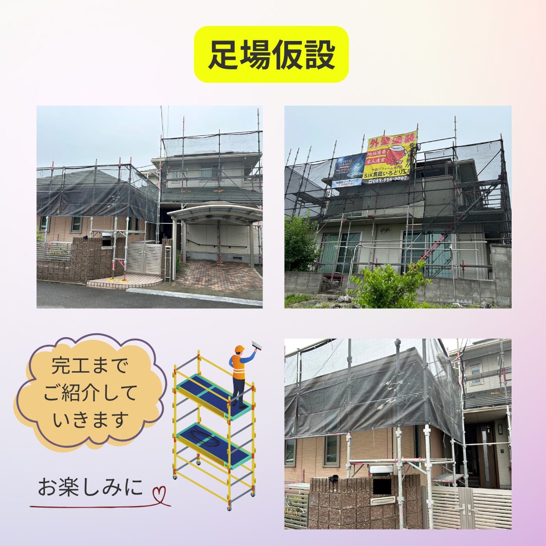 東温市にて足場仮設が完了しました🏠
