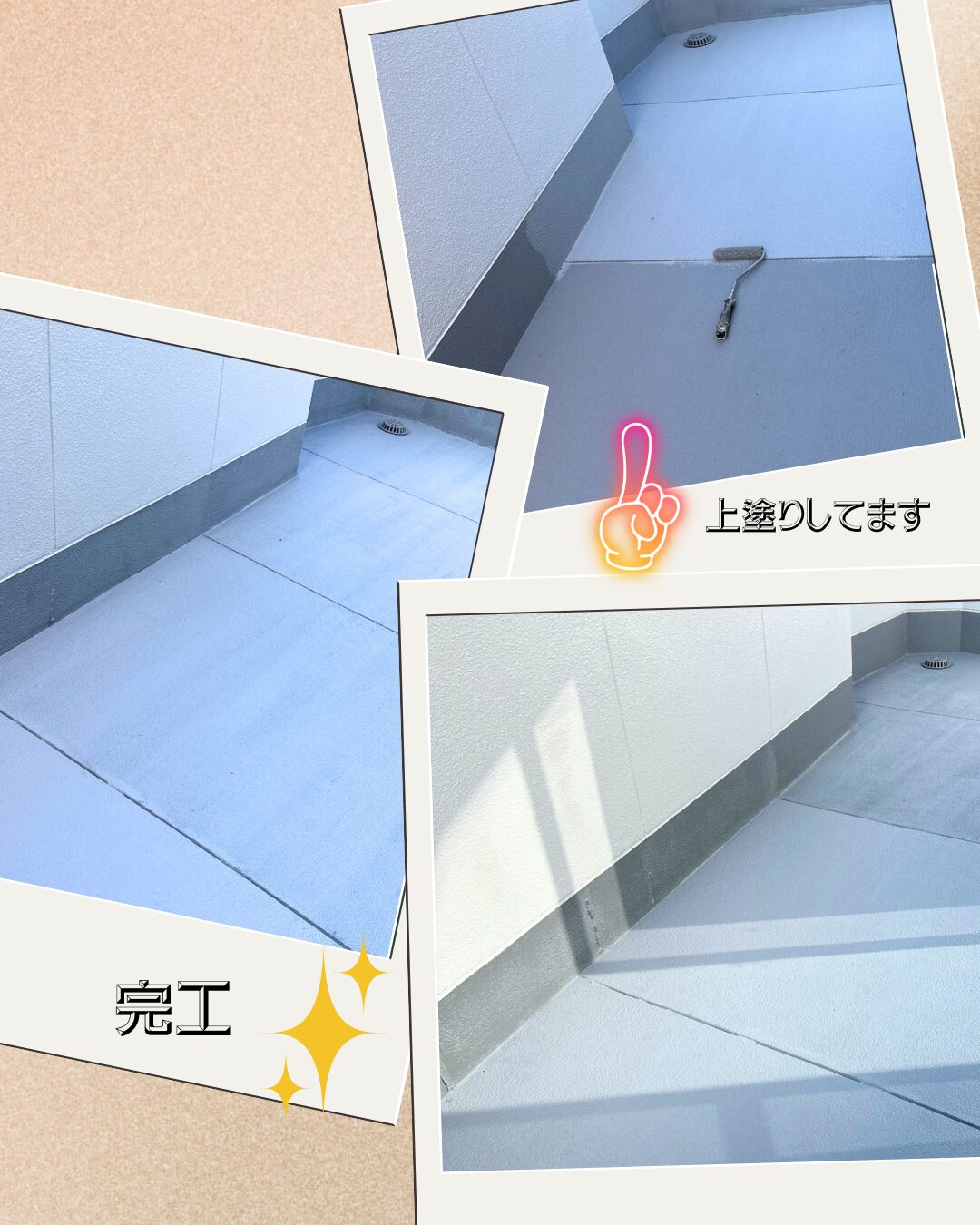 下塗り→中塗りの工程写真、上塗り→完工の写真となっております。