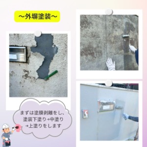 が見られました。外壁塗装工事を行うので、外壁塗装工事とともに外塀の塗り替えもご提案させていただきました。